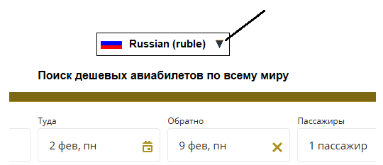 Как искать или купить авиабилет на разных языках и валютах Над поисковой формой нажимаем на кнопку.